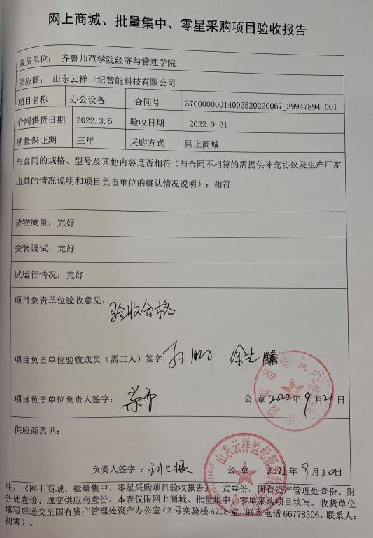 办公设备项目验收报告公示