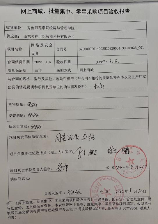 网络及安全设备39948036项目验收报告