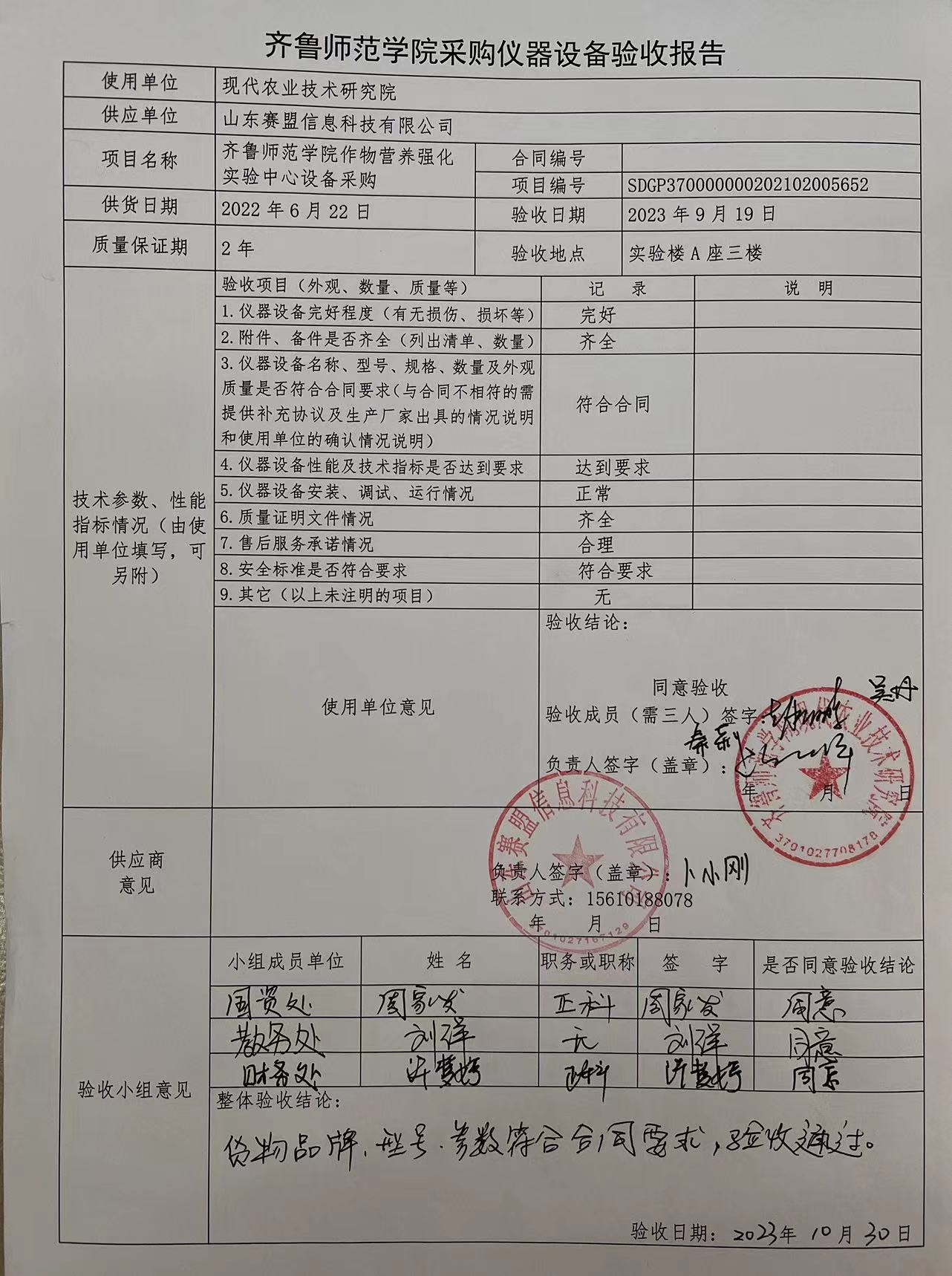 齐鲁师范学院作物营养强化实验中心设备采购项目验收报告