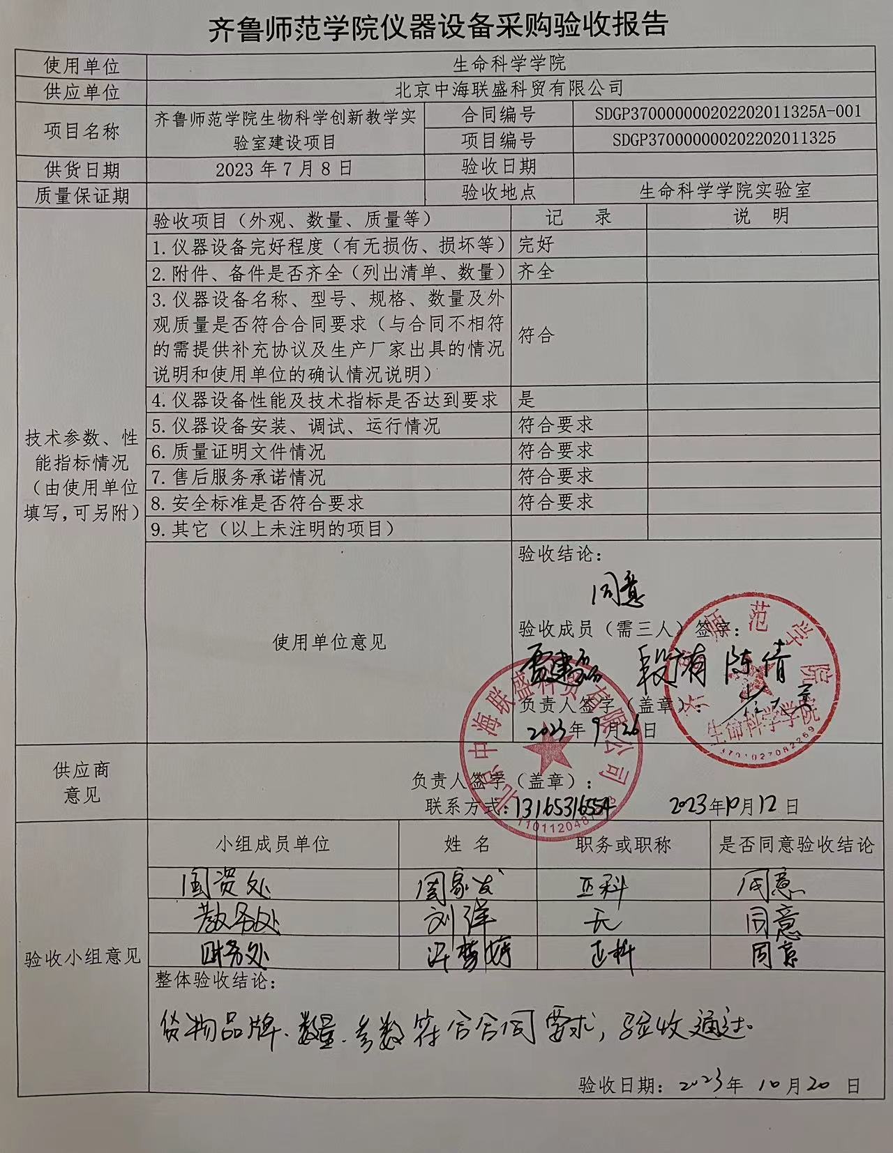 齐鲁师范学院生物科学创新教学实验室建设项目验收报告