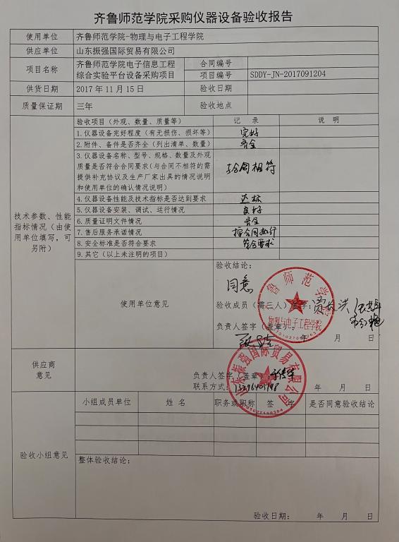 齐鲁师范学院电子信息工程综合实验平台设备采购项目项目验收报告