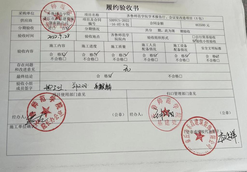 齐鲁师范学院学术报告厅、会议室改造项目(A包)项目验收报告公示