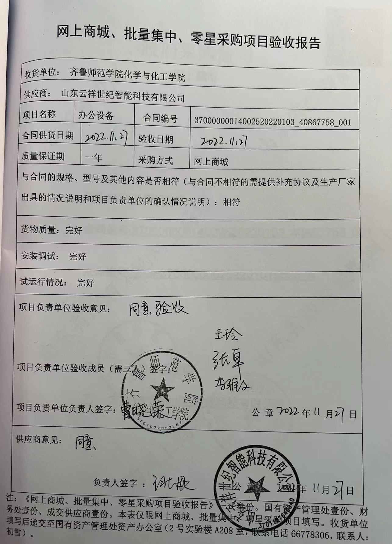办公设备58项目验收报告公示