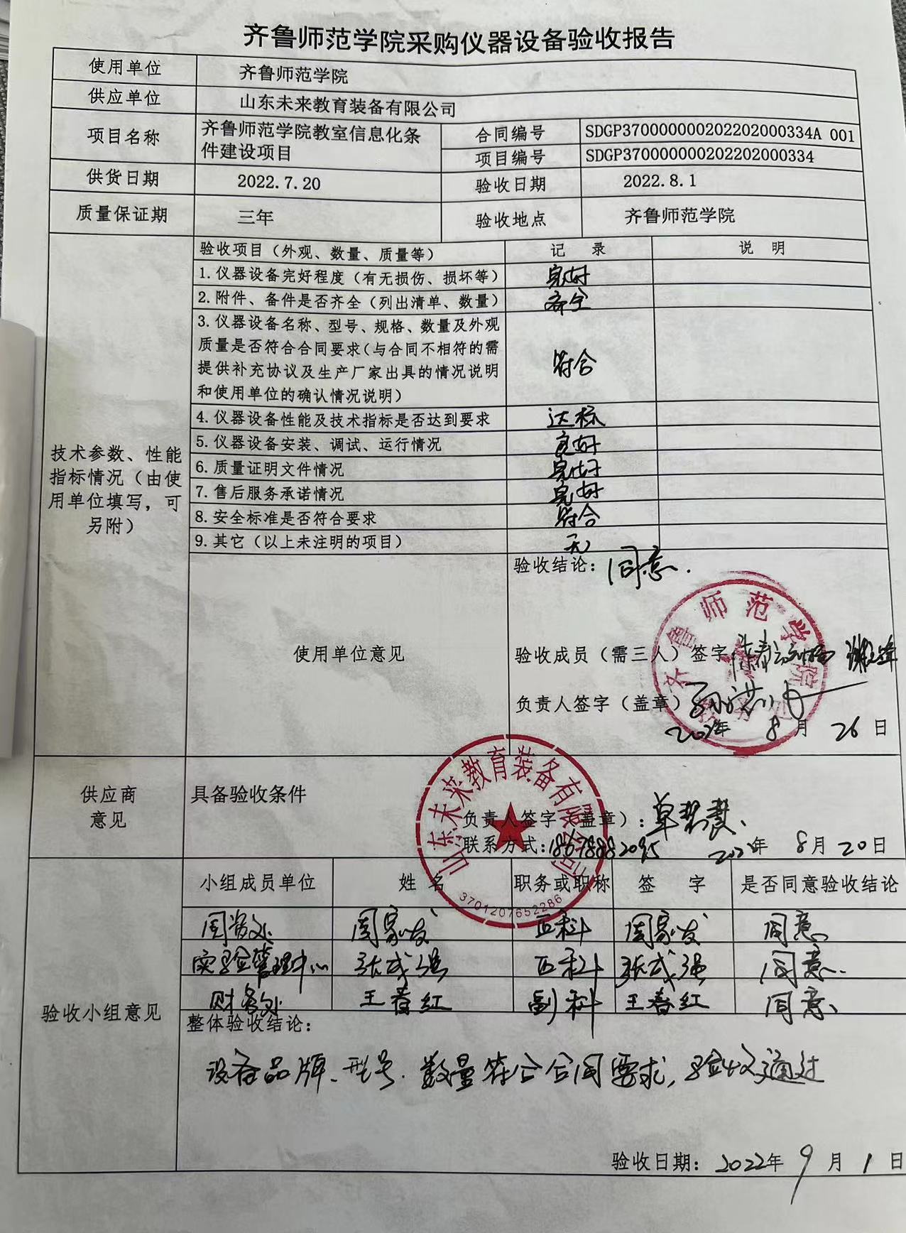 齐鲁师范学院教室信息化条件建设项目项目验收报告公示