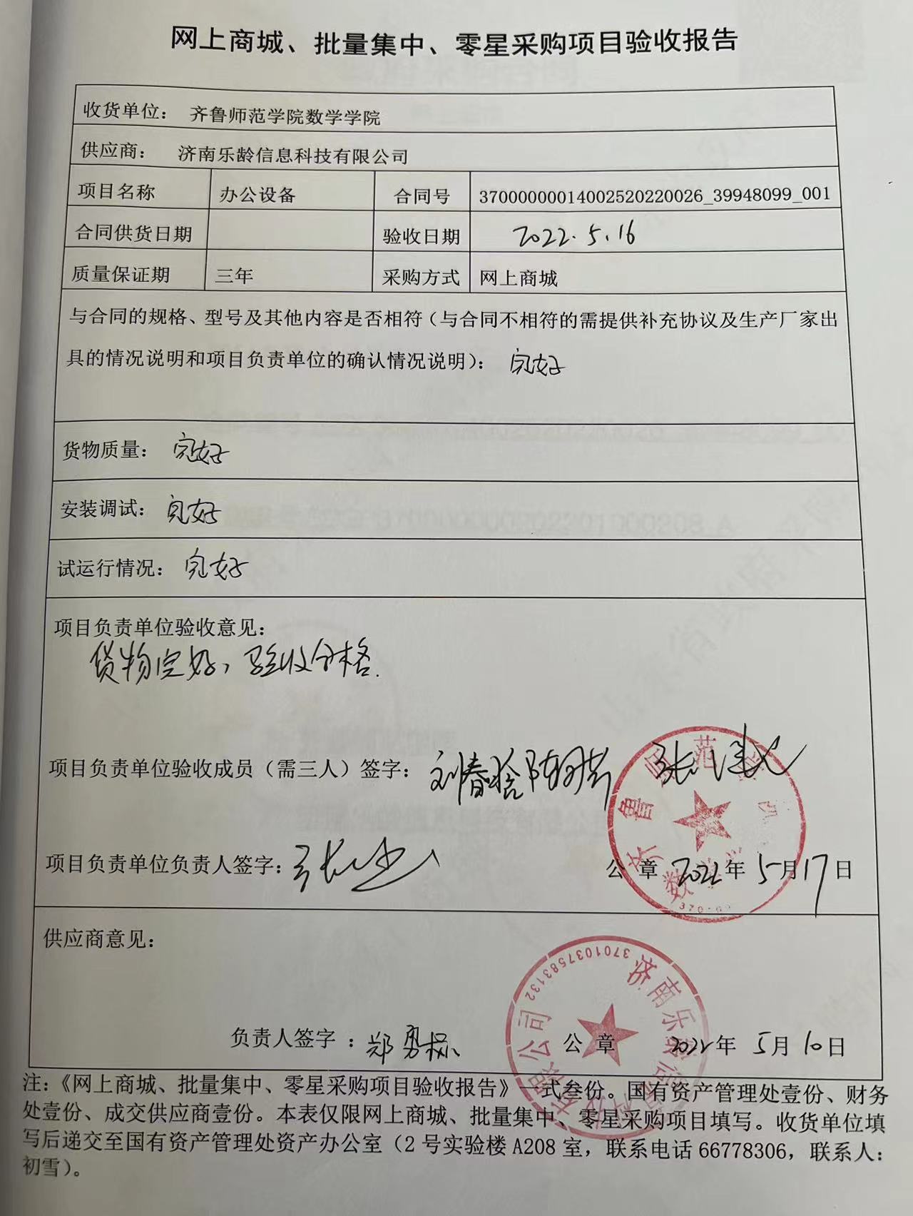 办公设备099项目验收报告公示