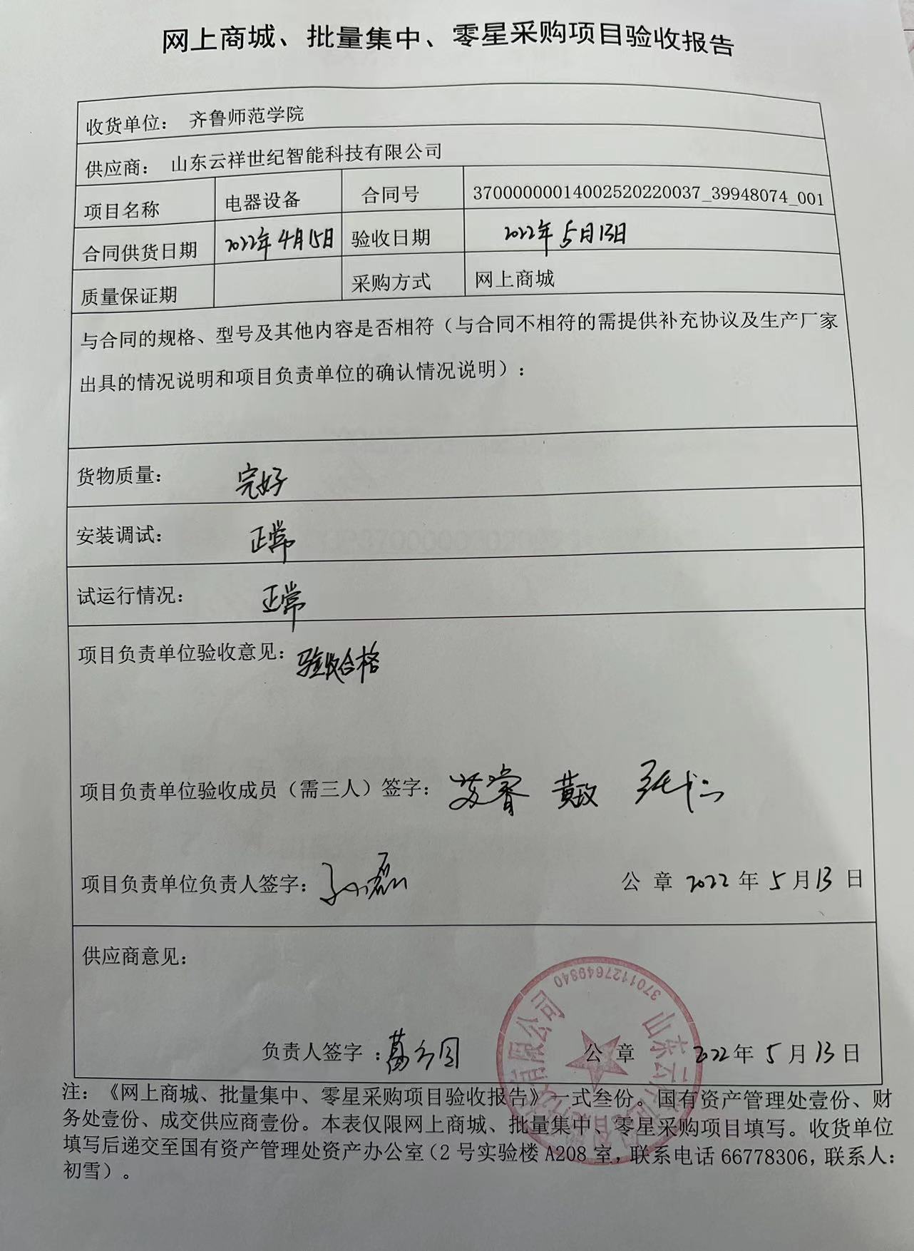 电器设备074项目验收报告公示
