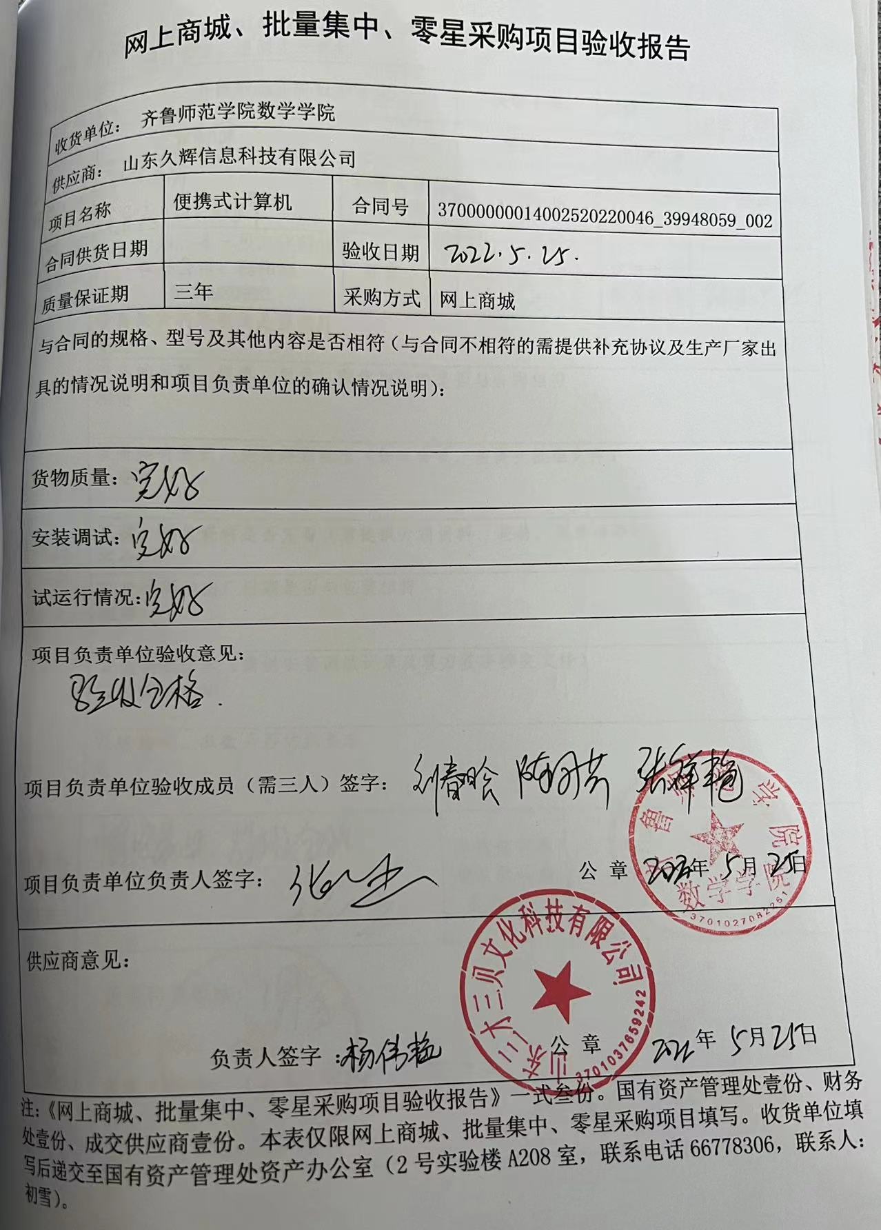 便携式计算机058项目验收报告公示